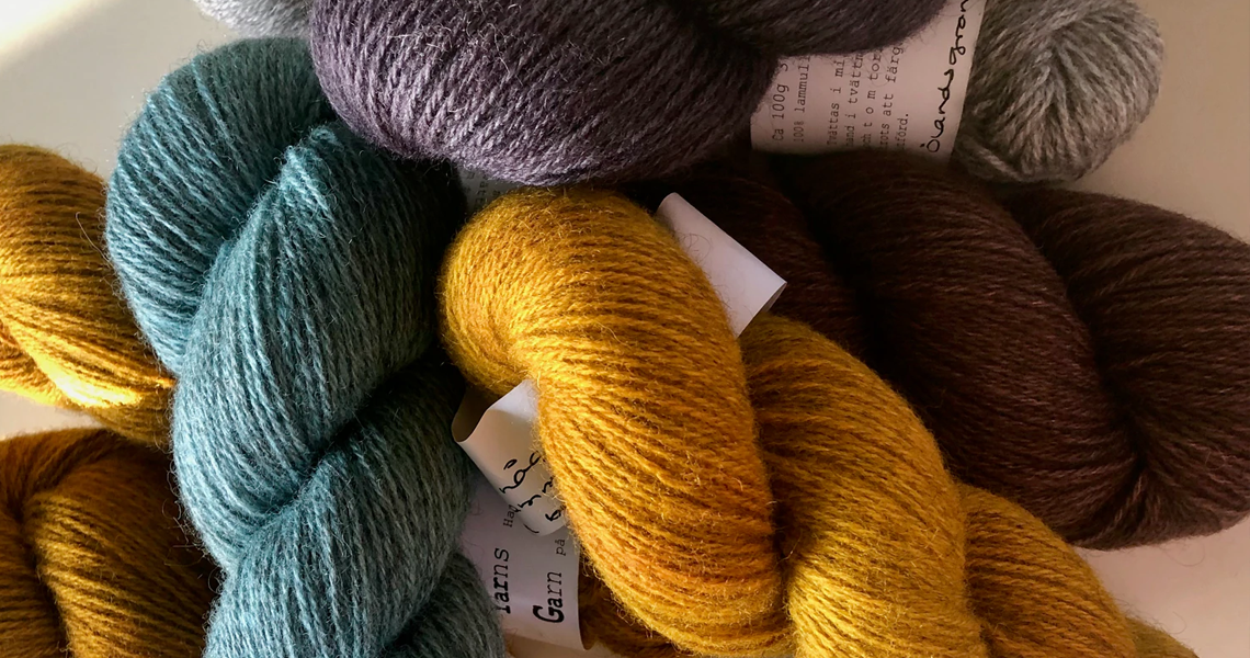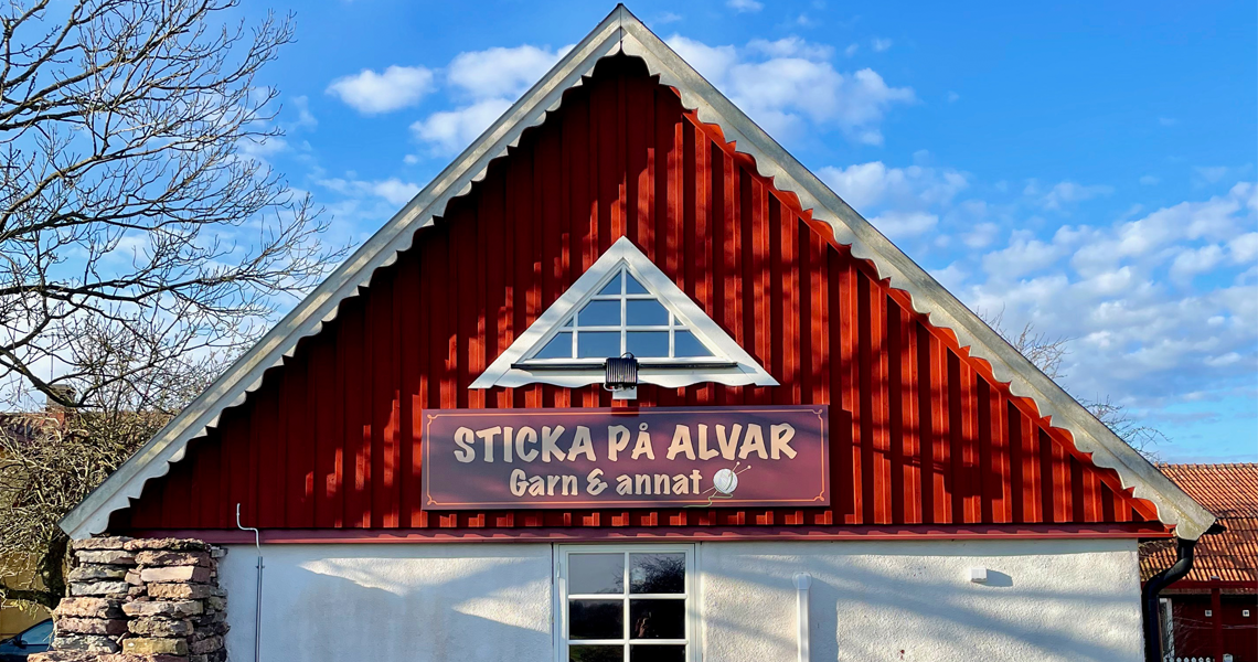 På randen till Stora alvaret, i norra delen av världsarvet ligger den lilla radbyn Skarpa Alby. I den gamla fårladan har vi inrett en garnbutik. Där har jag samlat några av mina favoritgarner och sticktillbehör, som jag hoppas att du också ska uppskatta. Tyvärr ingen webshop ännu, men skickar gärna en beställning efter kontakt.